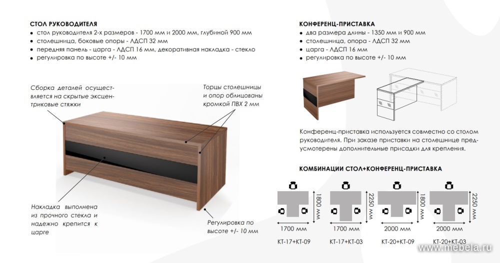 *Цена указана за минимальный стол 1712x900x750.