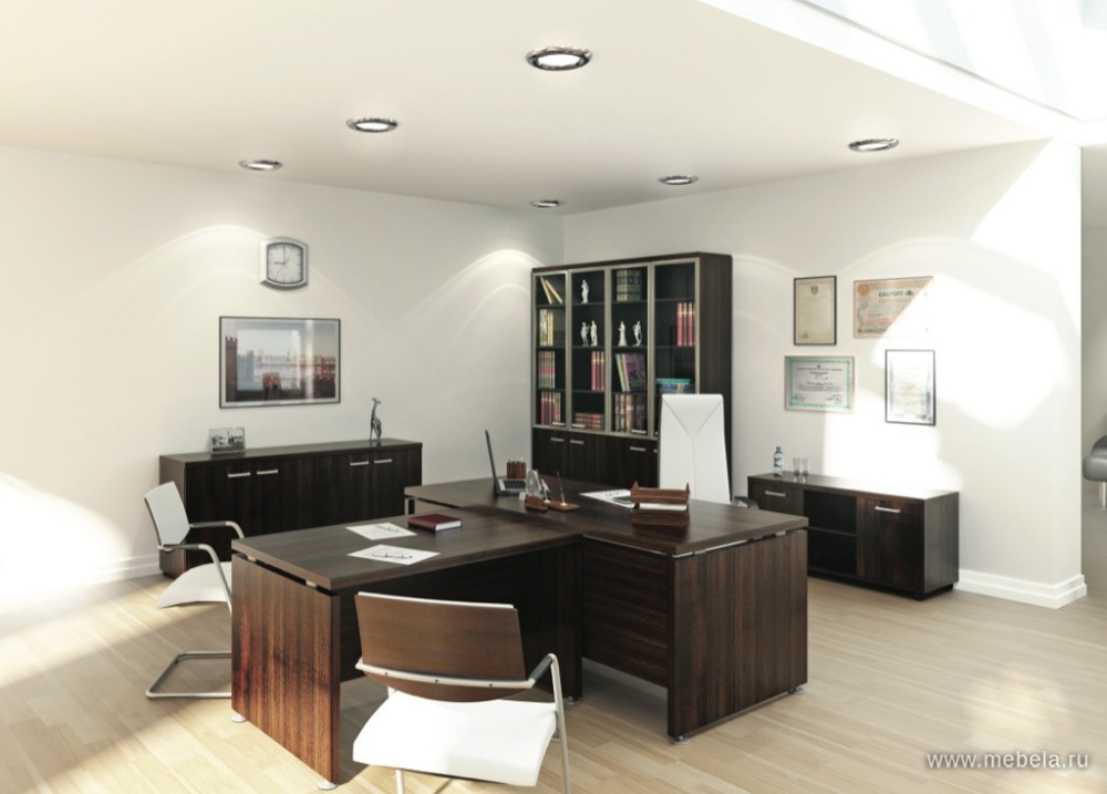 В мебели для кабинетов Grand удалось совместить классический официальный стиль с современными решениями. Прямоугольные массивные столешницы, имитирующие натуральное дерево, дополнены металлическими элементами фурнитуры, придающими комплекту мебели Grand оригинальности.