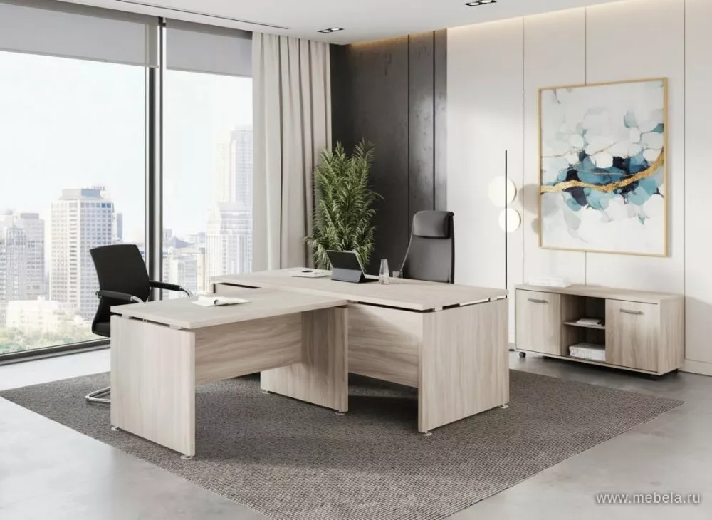 В мебели для кабинетов Grand удалось совместить классический официальный стиль с современными решениями. Прямоугольные массивные столешницы, имитирующие натуральное дерево, дополнены металлическими элементами фурнитуры, придающими комплекту мебели Grand оригинальности.