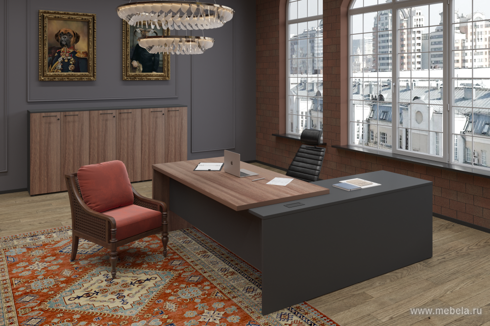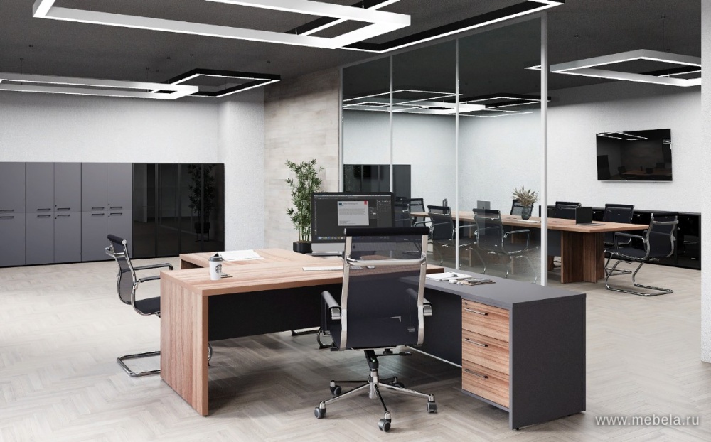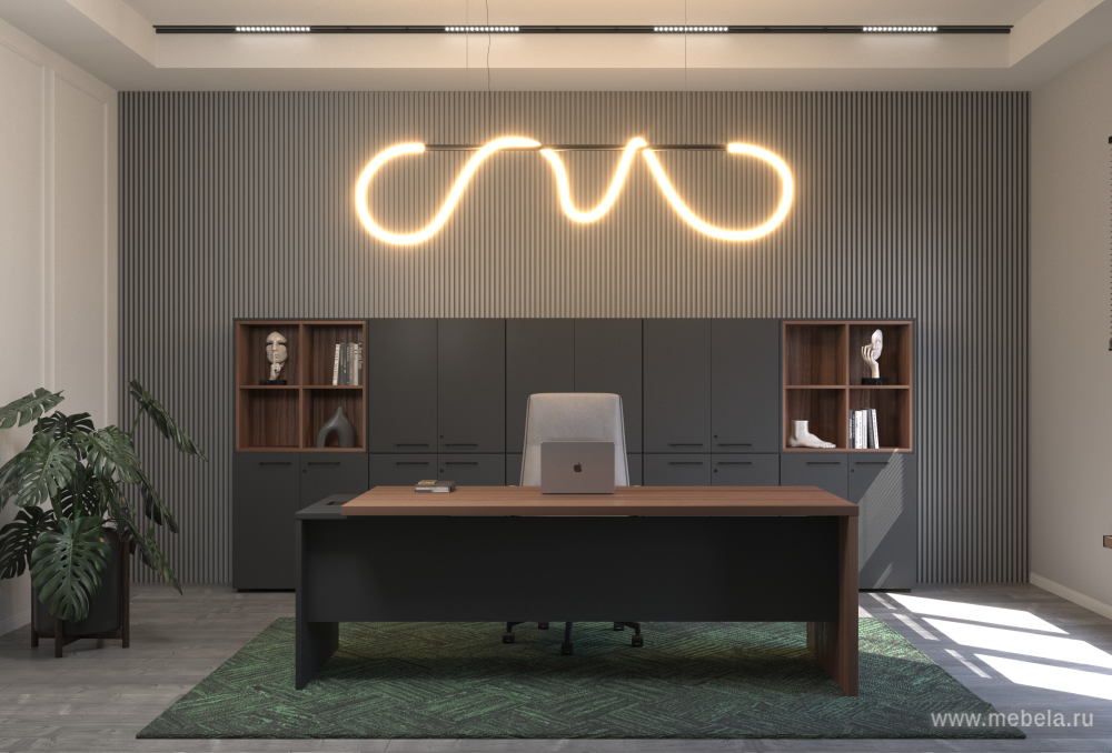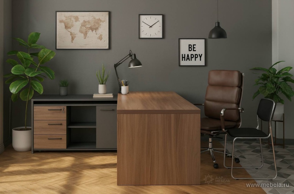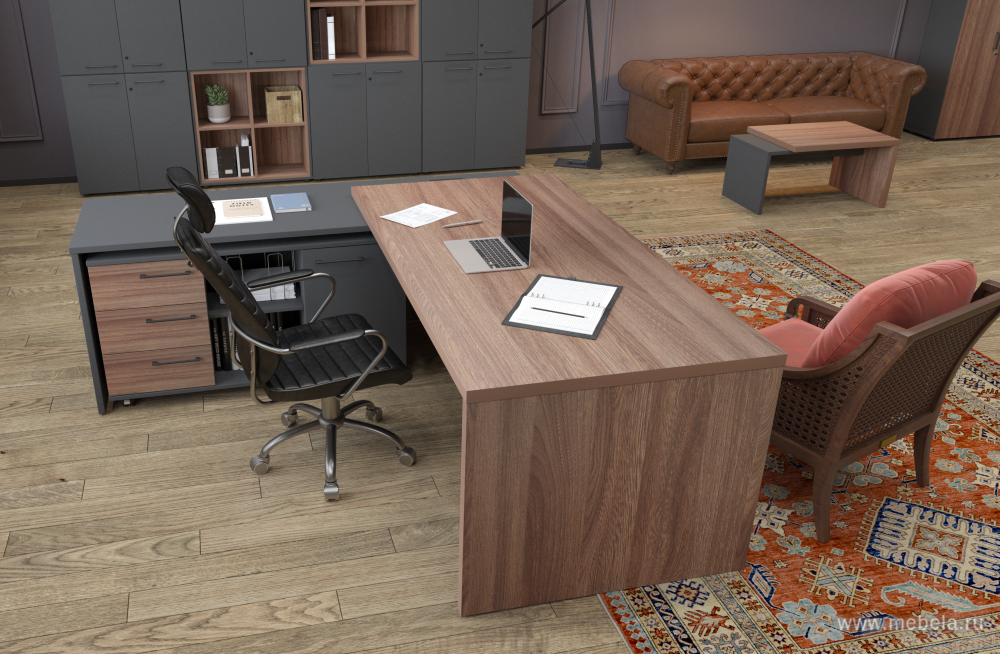 Кабинет для руководителя Kortez в цвете тёмный шимо - это не только рабочее пространство, но и место, где можно провести время с коллегами и партнерами. Он должен быть стильным, уютным и функциональным. В кабинете для руководителя должны быть удобные кресла, стол, шкафы для документов и другие необходимые предметы.
