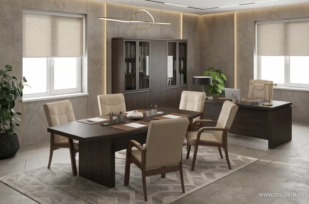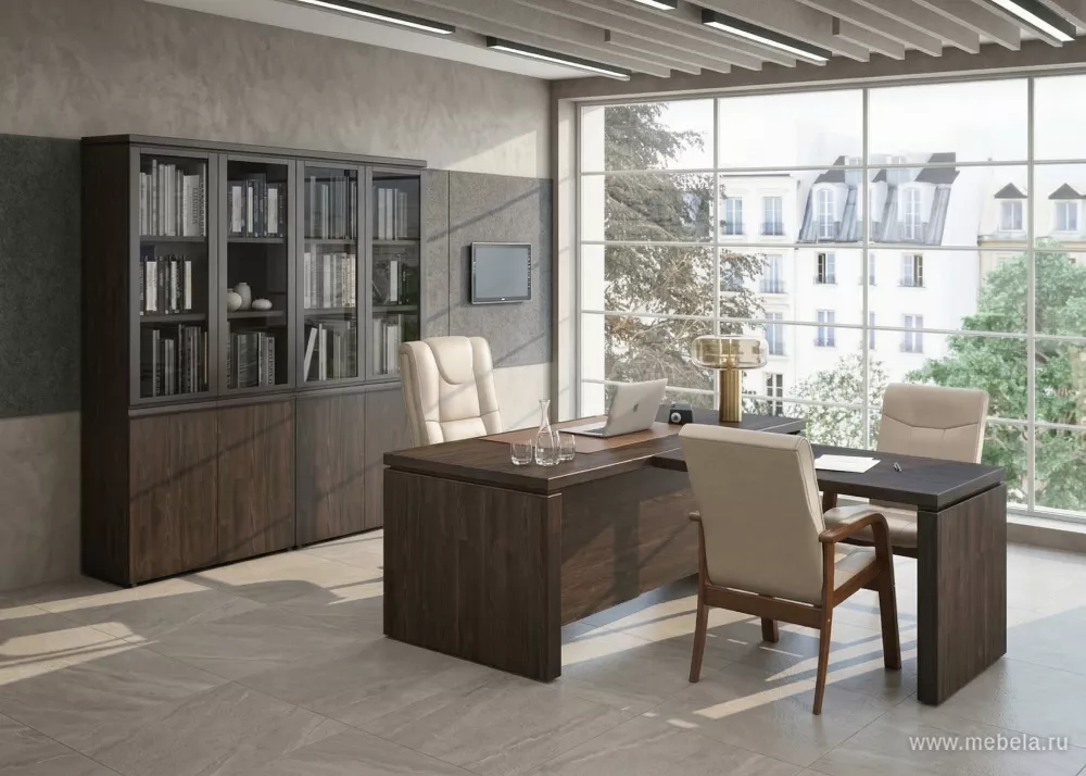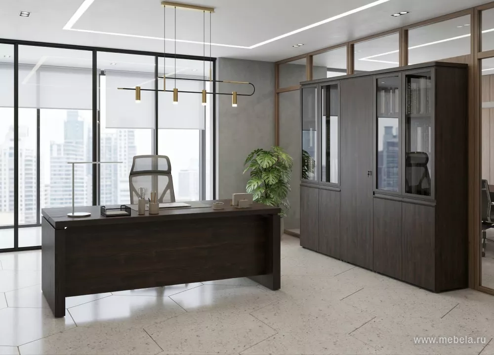 Кабинет директора Марк-II — это элегантное сочетание современного дизайна и высококачественных материалов. Столешницы из ЛДСП EGGER и массив твердолиственных пород обеспечивают долговечность и статусный внешний вид. Идеальный выбор для руководителей, ценящих стиль и функциональность.