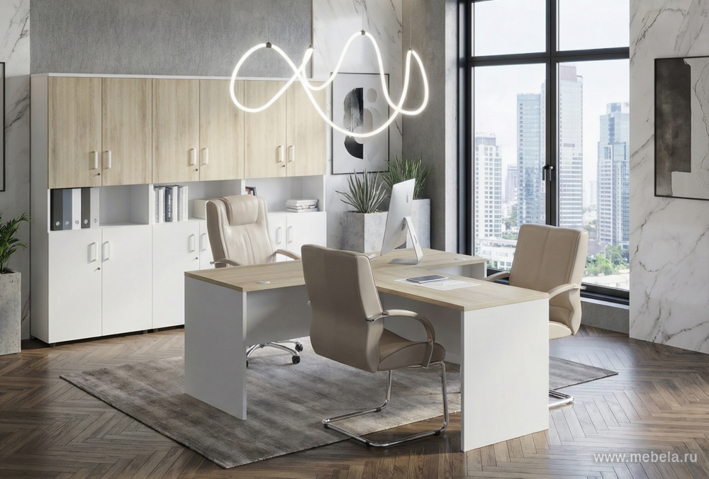 Кабинет для руководителя Smart в цвете кронберг с сочетанием цвета белый - это продукт высокого качества, произведенный в России. Он представляет собой элегантный и функциональный кабинет, который идеально подойдет для руководителей и менеджеров.