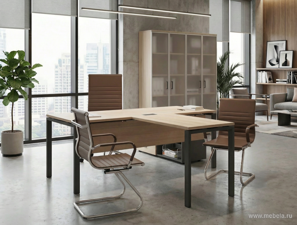 Кабинет руководителя Style project Acacia — современное решение российского производства. Прочный металлокаркас, ЛДСП в цвете акации Лорка, элегантные опоры и широкий выбор оттенков создают стильный и надежный офис для деловых лидеров.