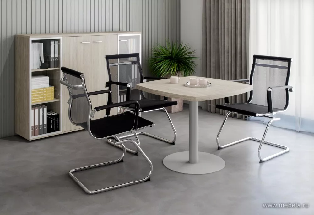 Кабинет руководителя Wing White - комфортный и функциональный комплект мебели, отражает последние тенденции эргономики и дизайна рабочего пространства. В нем солидность форм сочетается с лаконичностью, а благородный цвет светлого дуба подчеркивается матовым металлом ручек и зеркальным блеском стекла в шкафах.