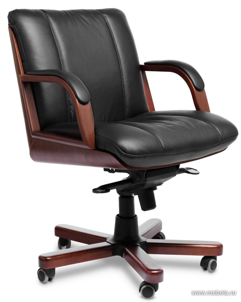 Для изготовления данной модели кресла используется натуральная кожа (цвета в ассортименте), кожзам и дерево (цвет темного ореха). Задняя часть изготавливается из фанеры с пластиковой облицовкой. Крестовина и подлокотники декорируются деревом. Кресло характерно механическими возможностями, а имен...