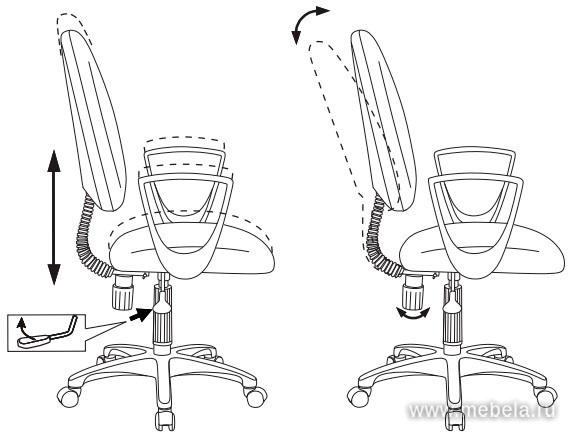 - Регулировка спинки и высоты сиденья