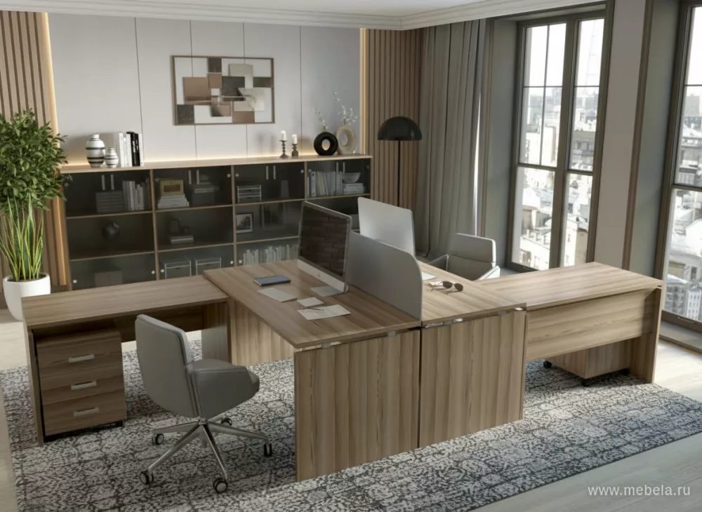 При создании мебели Аргентум были применены необычные решения, как на конструкторском, так и на дизайнерском уровнях. Столы повышенной длины и необычного типа сборки сочетаются здесь с грубо фактурным рисунком дерева на ламинированных панелях ДСП. Все это делает гарнитур не только стильным, но и многофункциональным.