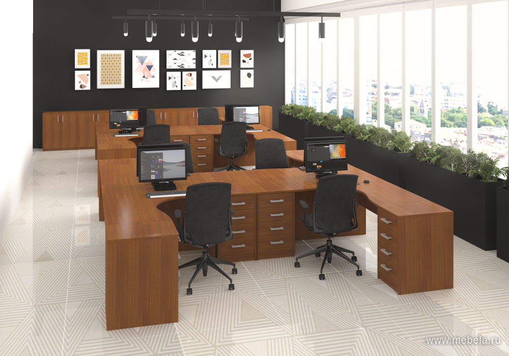 Мебель Арго освежит любой офис и сделает рутинный рабочий процесс гораздо интереснее. Комбинированные цветовые решения (цветные вставки на ящиках столов и т.д.) и эргономичный дизайн создадут не только уникальную атмосферу, но и повысят эффективность работы.