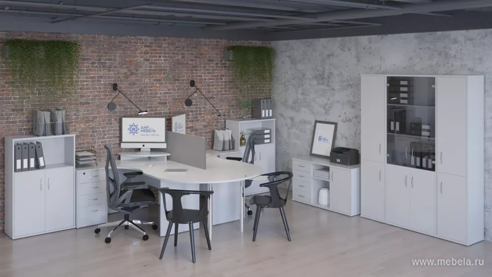 Спокойные серые тоны офисной мебели Riva Grey отлично подойдут к любому интерьеру. Простые линии элементов гарнитура не перегружают пространство даже самого малогабаритного офиса. Модульная система сборки позволит оборудовать самые разные рабочие места – индивидуальные, коллективные или конференц-залы.