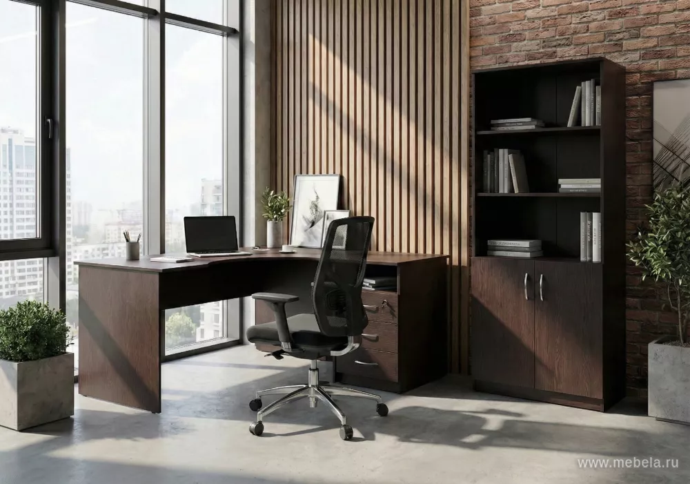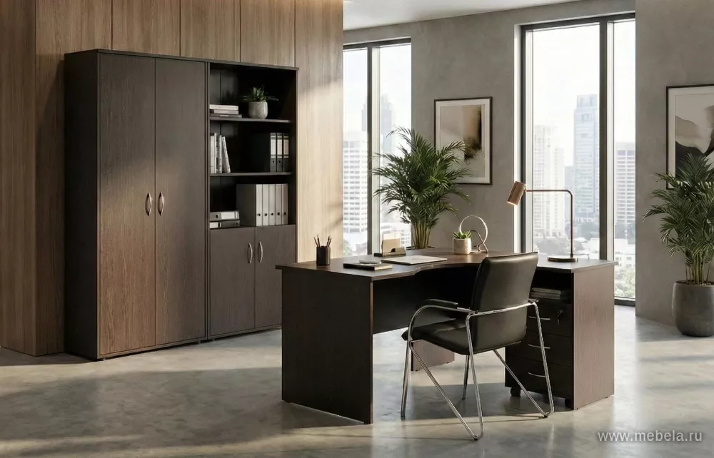 Мебель для офиса Рива Венге (Riva) докажет, что дизайн интерьера может быть одновременно строгим и инновационным. Строгость достигается за счет темного цвета Венге ЛДСП, а инновационность – комбинированными металлик-вставками. Весь этот внешний лоск сохранится надолго, потому что ламинат отталкивает грязь и легко моется....