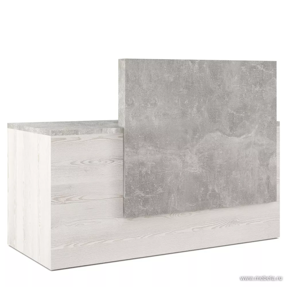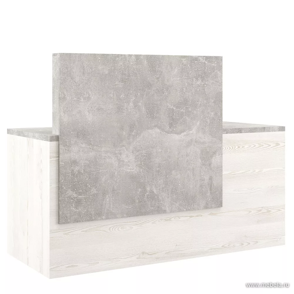Стойка ресепшн B-Tone -солидная коллекция в цвете сосна бетон светлый, сочетающая строгую классику, главные черты функционального минимализма и практичность. Изысканный дизайн стойки ресепшн в абстрактных цветах природной древесины вяза подчеркнут официальность помещения.