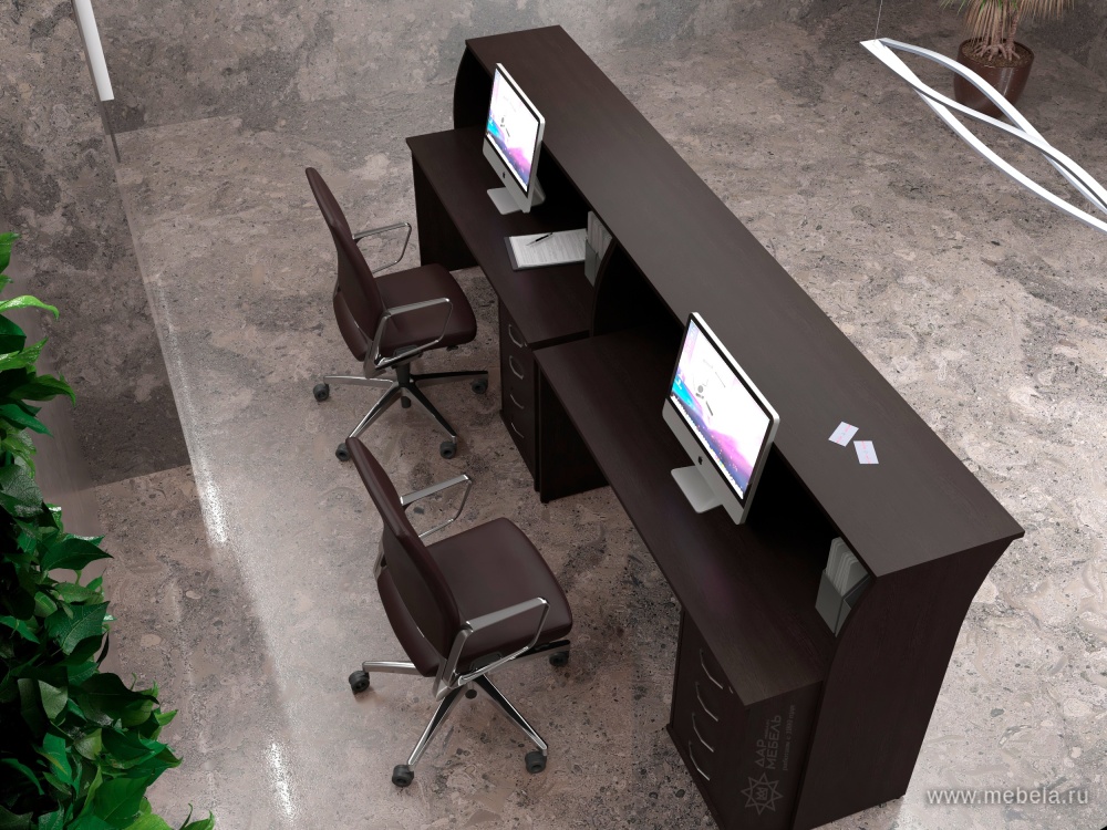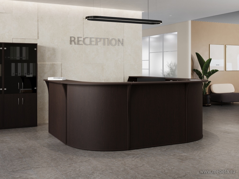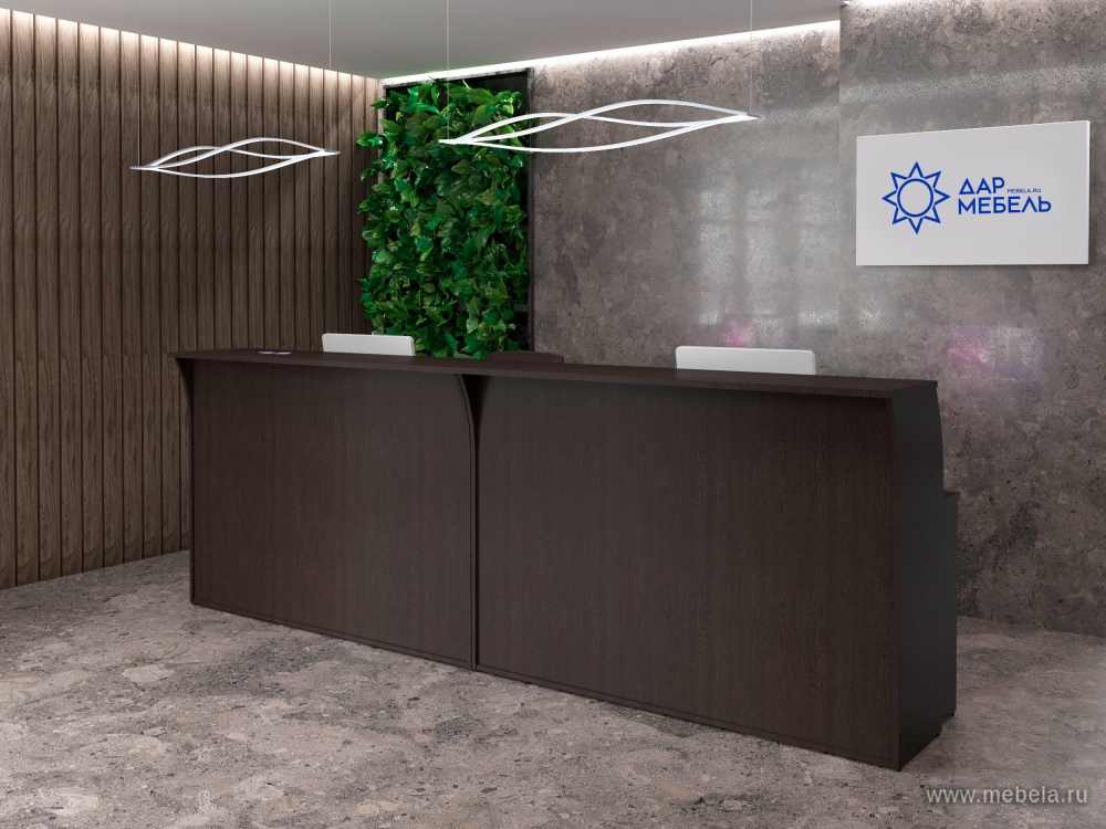 Если вам нужно подчеркнуть солидность и современный стиль приемной вашего офиса, то стойка ресепшн RIVA Венге подходит для этих целей идеально. Сразу 2 варианта позволяют сделать или строгий стиль в темном цвете венге или преобразить его Хай-Тек решением с помощью металлический наборных элементов.