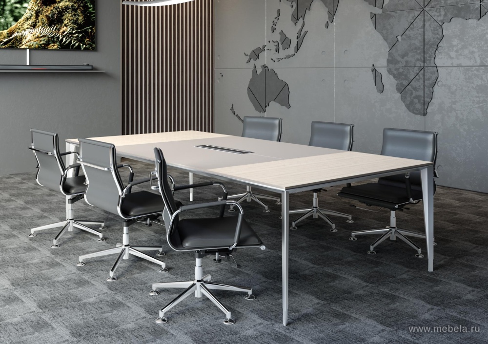 Эргономичный и элегантный стол для переговоров Atlas создает в конференц-зале легкую атмосферу непринужденности благодаря современному выполнению в стиле хай-тек. Спокойные приглушенные тона и простые четкие формы добавляют изящества интерьеру, и полностью отражают современные взгляды на переговорную мебель.