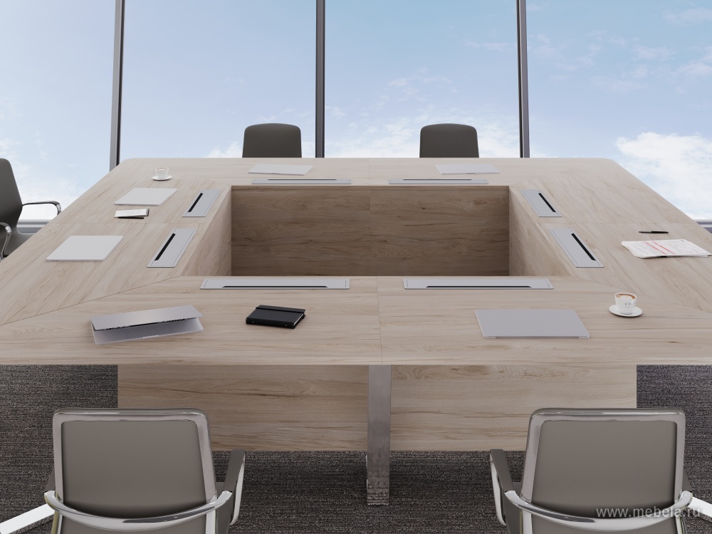 Стол переговорный П-образный с лючками из нержавеющей стали
