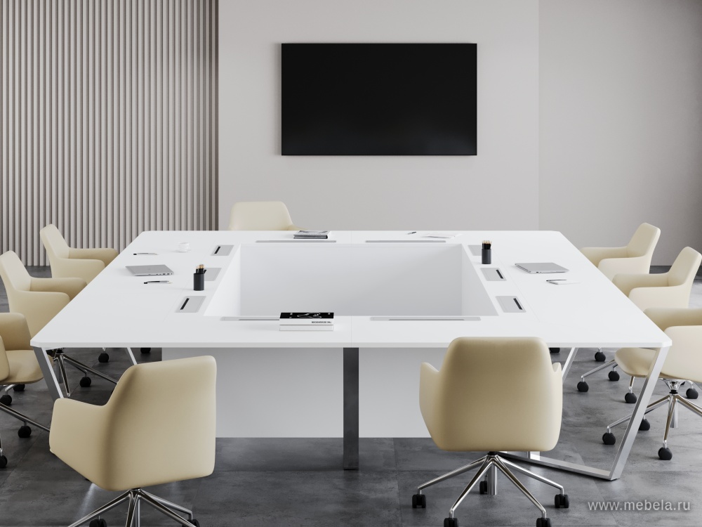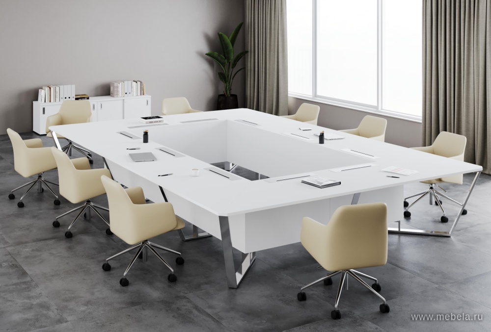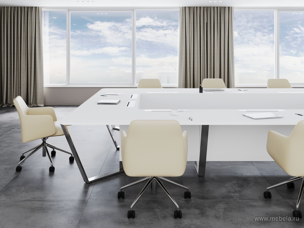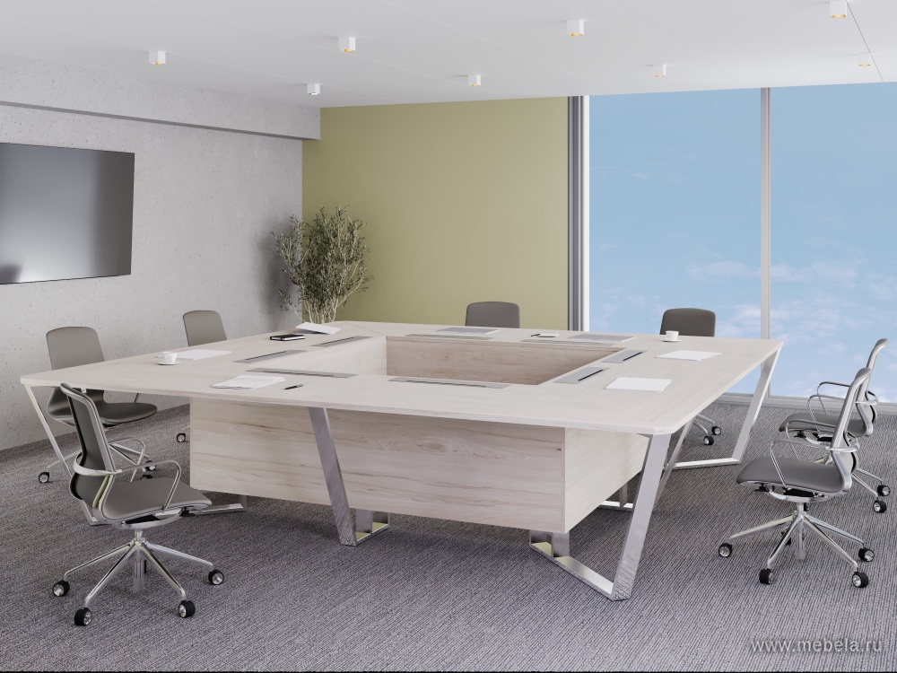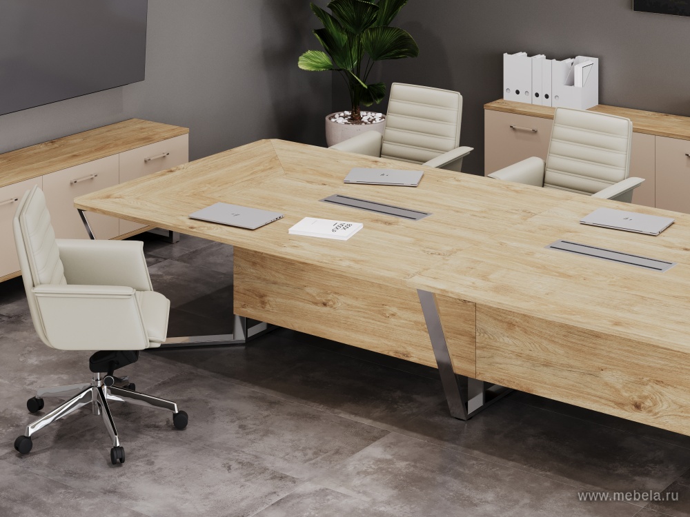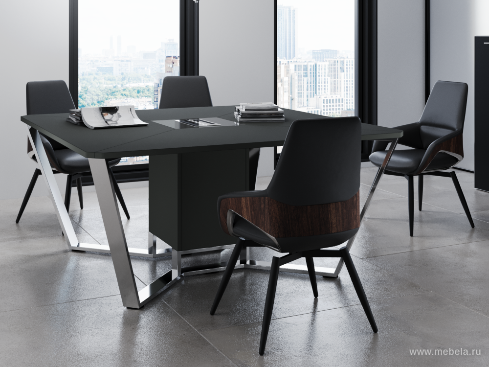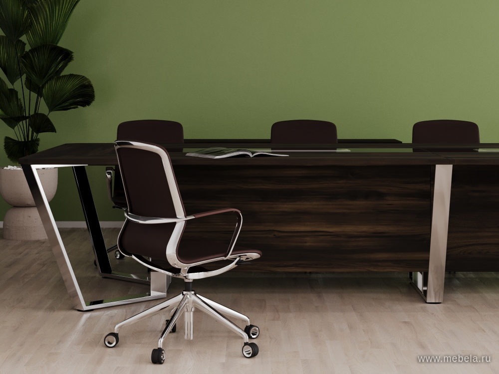 Стол для переговоров "Steel Meet Chrome" - идеальное решение для современных офисов, где важна не только функциональность, но и стиль. Изготовленный в России из высококачественного ЛДСП и нержавеющая стали, он сочетает в себе прочность и элегантность.