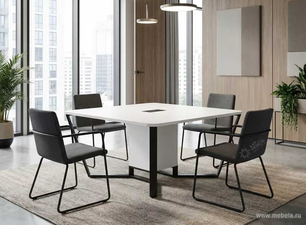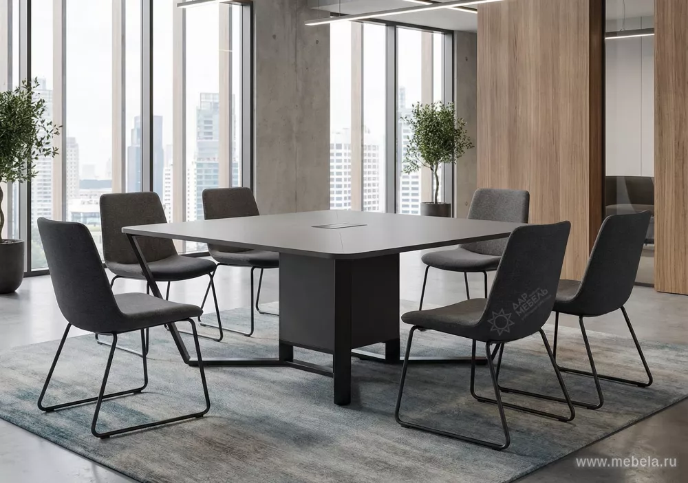 Стол для переговоров "Steel Meet Black" - идеальное решение для современных офисов, где важна не только функциональность, но и стиль. Изготовленный в России из высококачественного ЛДСП и крашеного металла, он сочетает в себе прочность и элегантность.