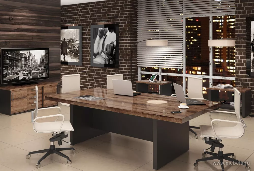 Стол для переговоров Верона - удобный и практичный предмет мебели, гармонично сочетающий утонченность классики и современность. Он выполнен в модном цветовом сочетании и имеет массивную столешницу, которую выигрышно подчеркивает глянцевый блеск покрытия. К тому же, он слегка смягчает столь лаконичный дизайн.