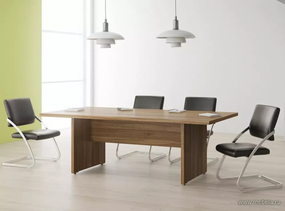 Стол для переговоров Zion при небольших габаритах создает иллюзию простора благодаря стильному и универсальному решению дизайна: одинаковое цветовое решение всех элементов конструкции. Насыщенный ореховый цвет или элегантный светлый дуба шамони с имитацией прожилок дерева не раздражает и не отвлекает внимание.
