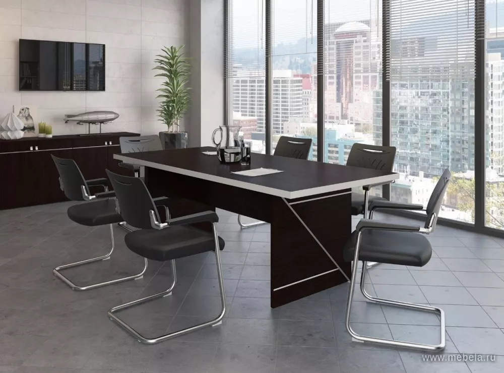 Если вы хотите внести в свой офис изюминку оригинальности и сделать его непохожим ни на один другой, то столы для переговоров Zoom в цвете Венге реализуют такой замысел превосходно. Их уникальный декор боковых опор и отделка торцовых элементов панелей обеспечивают динамичный яркий образ.